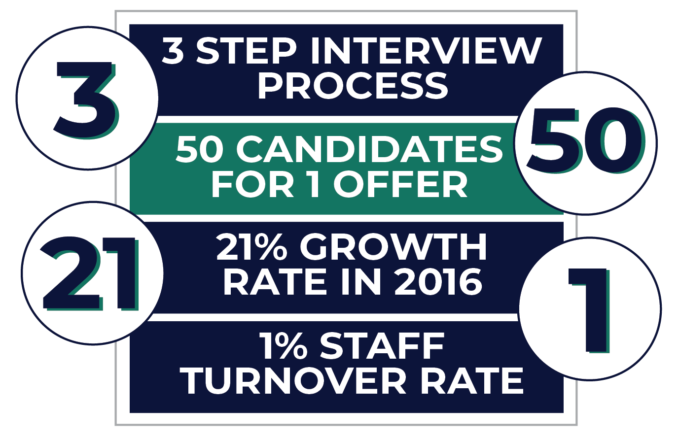Figures like that show a rapidly expanding organization whose hiring process not only keeps pace with increasing demand, but is finely tuned to identify quality candidates.